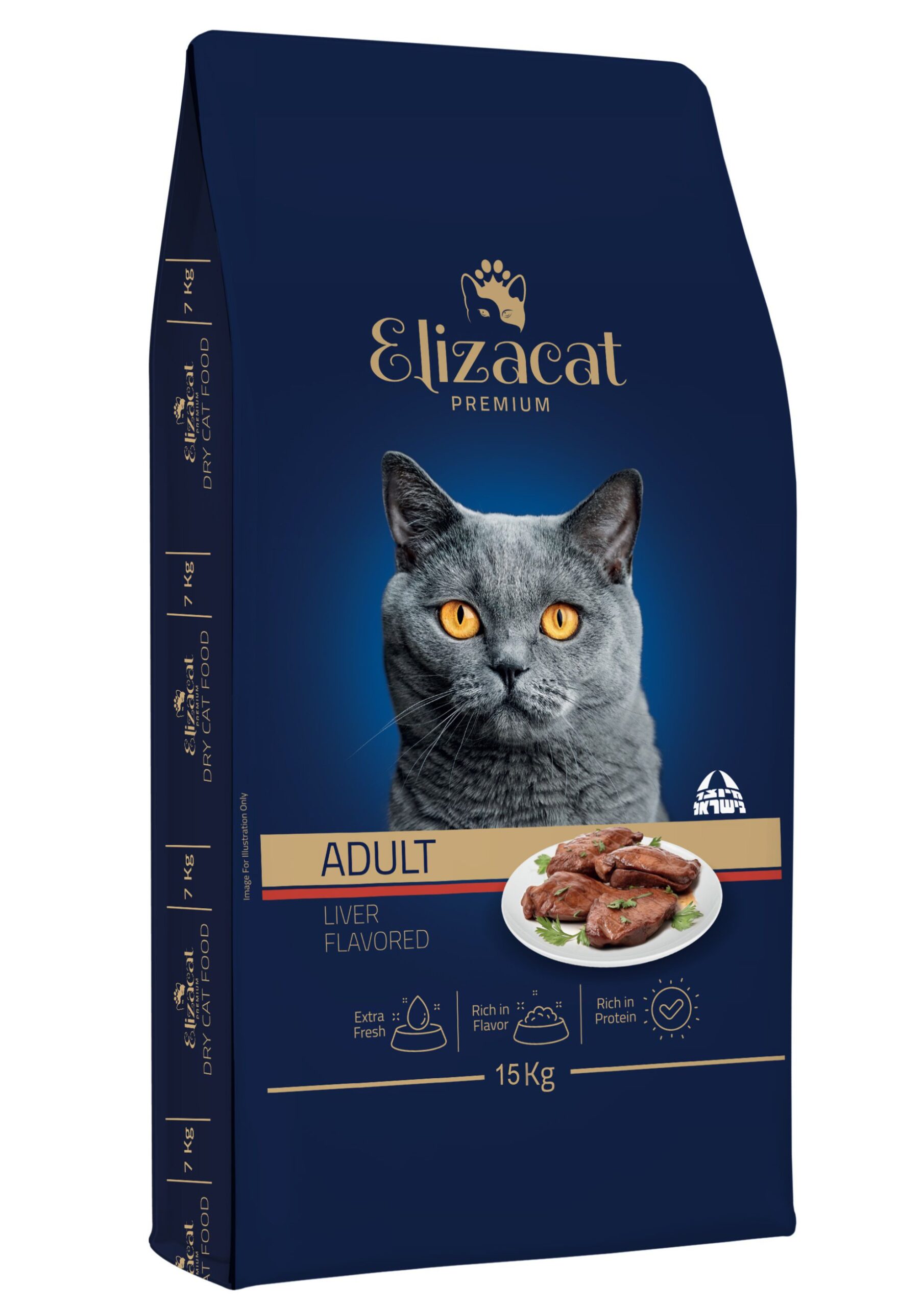 אליזקט אדולט כבד הוא מזון מלא ומאוזן לחתול שלכם. המזון עשיר בחלבון, מועשר בתוספת ויטמין A המסייע לבריאות העור והפרווה וגם בתוספת ויטמין D3 החיוני לספיגת סידן וזרחן ובניית עצמות ושיניים בריאות וחזקות. המזון מיוצר ממש כאן בישראל ובעל סמל היצרן הישראלי!