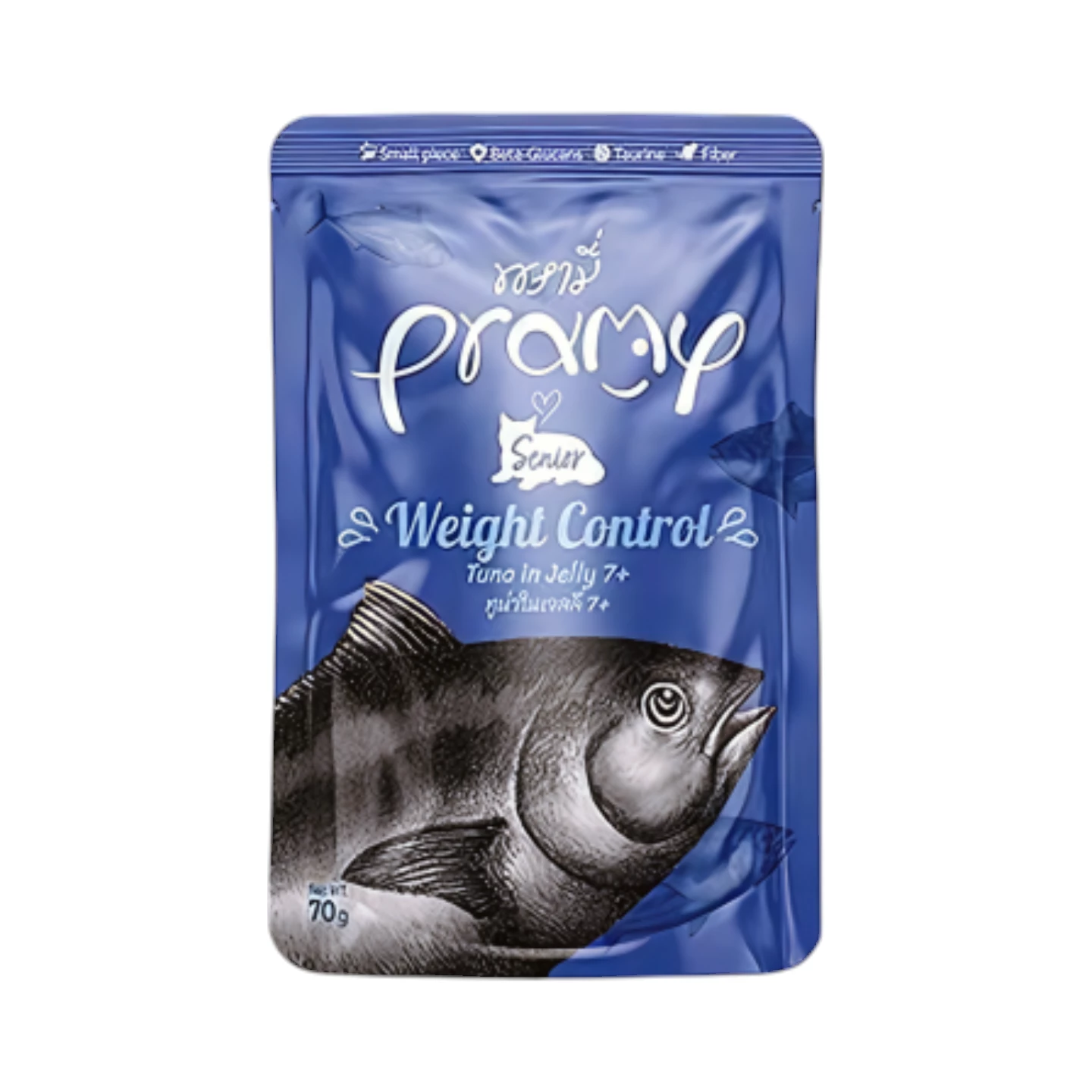 פראמי פאוץ' טונה סניור הוא שימור מזין ומאוזן לחתול המבוגר שלכם. מועשר בחלבון איכותי ובשר טרי המשמש גם בני אדם בכדי לשמור על שרירים חזקים ורמות אנרגיה מאוזנות. תומך בעור ובברק הפרווה בעזרת חומצות OMEGA 3 ו- OMEGA 6 התומכות גם בתפקוד הלב והמוח. השימור הוא ללא דגנים כך שמתאים גם לחתולים בעלי רגישויות. מכיל פרוביוטיקות התומכות בתהליך העיכול. במרקם נתחים בג'לי עדין המעודד הידרציה וללא תוספות מלאכותיות.